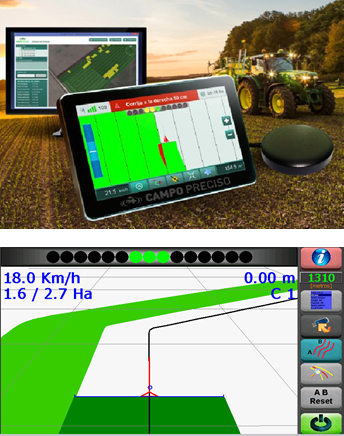 Nuestro computador a través de un nodo de potencia controla el caudal que va a la barra de aplicación, y las secciones; accionando directamente sobre las válvulas eléctricas de la máquina, impidiendo la sobre aplicación y la falta de la misma. Se puede hacer aplicación variable del producto líquido (fertilizantes líquidos), utilizando un mapa geo referenciado. Posee además un receptor de GPS de precisión +/- 4 cm, para la función de guía con ruta virtual en pantalla.
